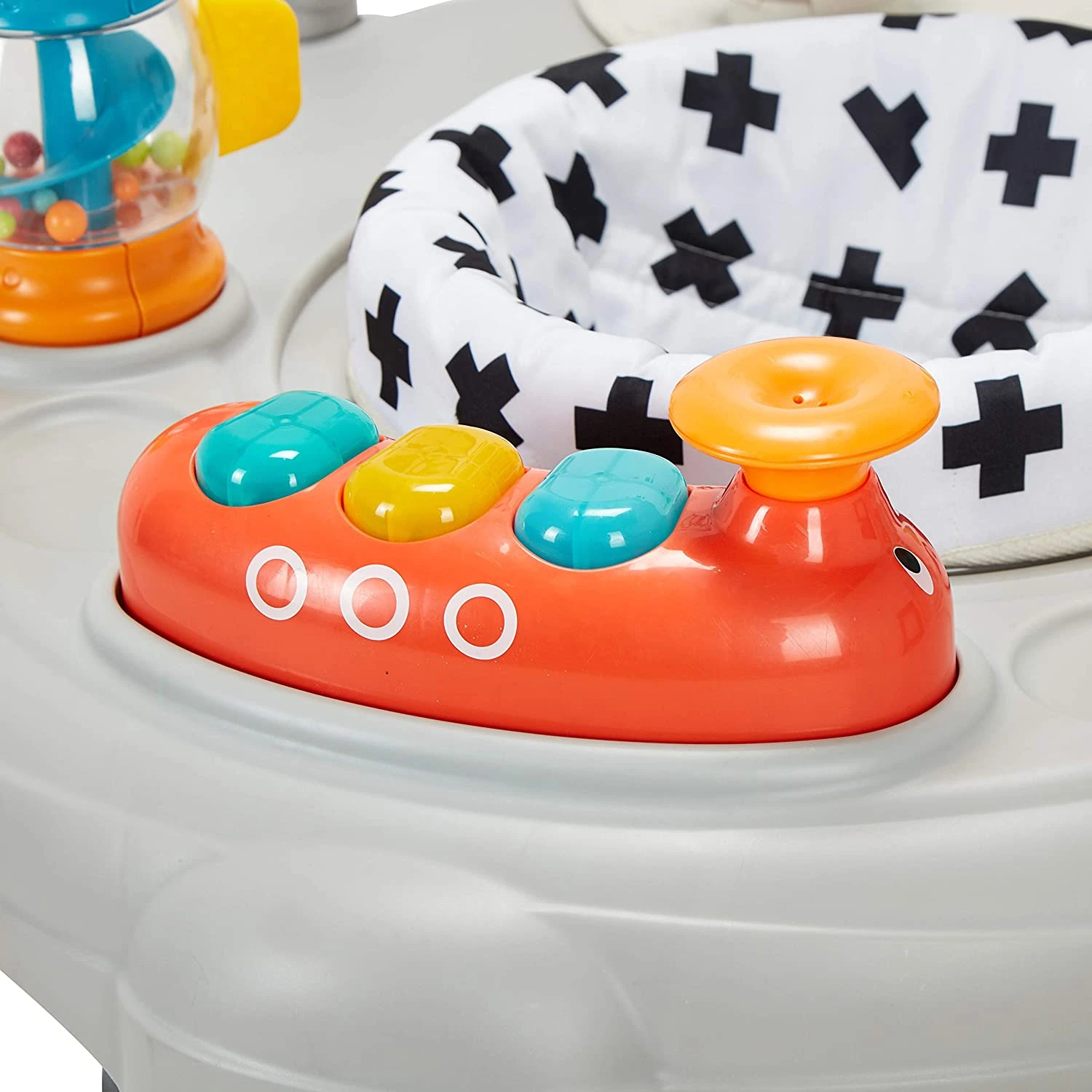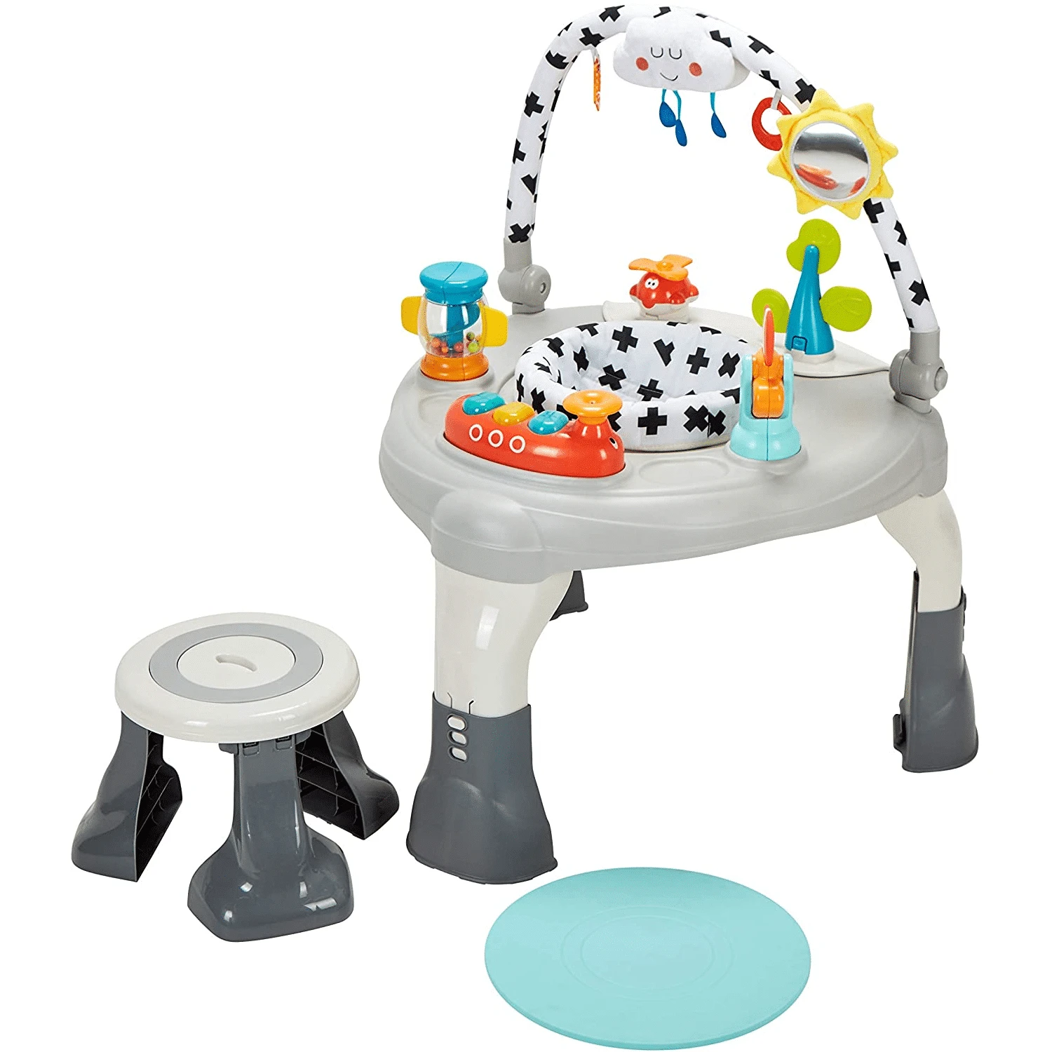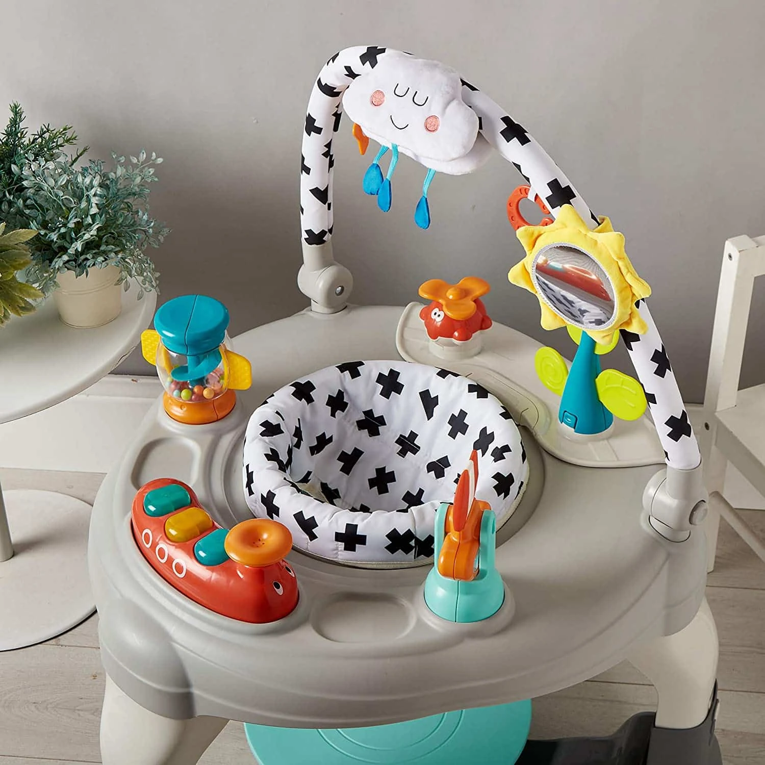 In entertainer mode, the supportive rotating seat gives baby 360-degree access to the play features, with a bounce pad included for fun and physical development.