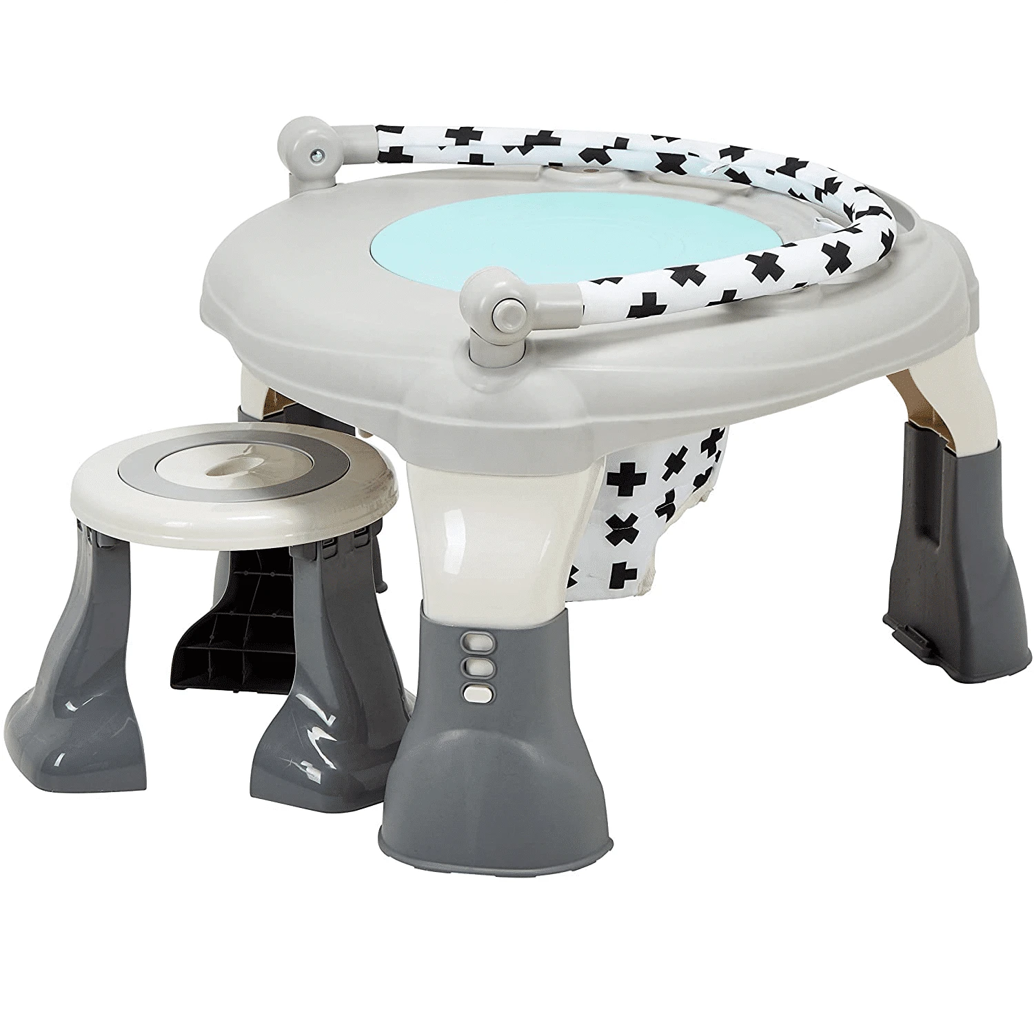 As your child grows and can support their own weight fully, it can be used as a cruising table, and finally, for older toddlers, it converts into a small table and stool, perfect for arts and crafts, tea parties or other games.