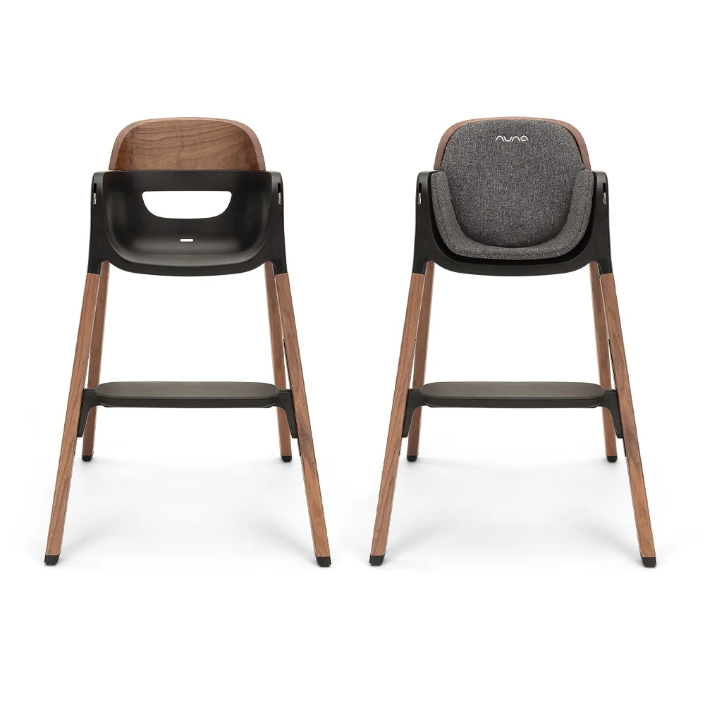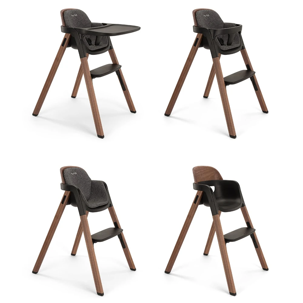 Nuna BRYN Highchair Sanderson has sleek lines, warm wood accents, and an intuitive design that decorates your dining space.