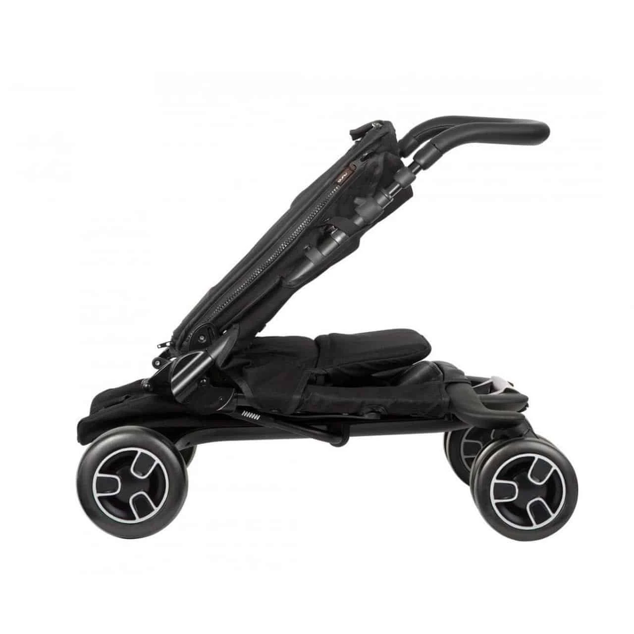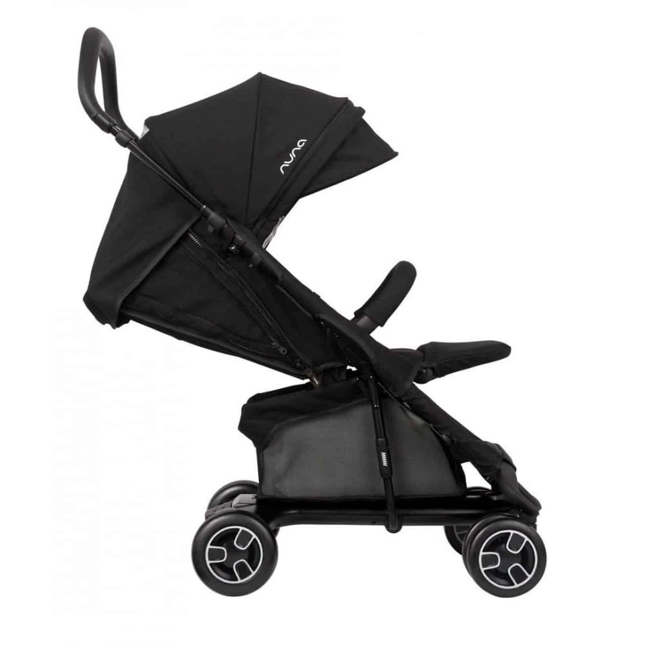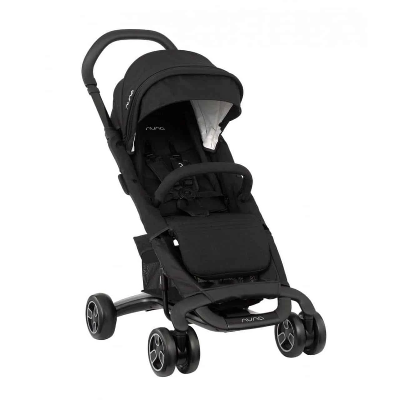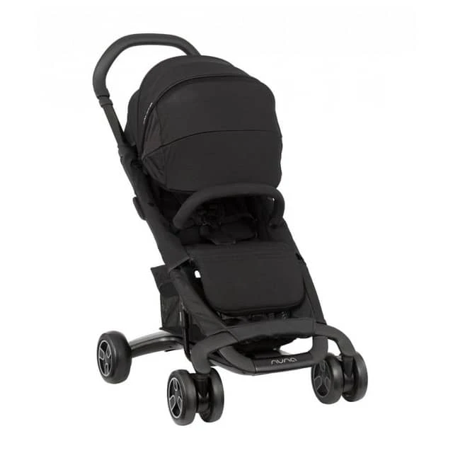 The Nuna Pepp Next – Caviar provides superior manoeuvrability and an even smoother ride than previous Pepp generations! The Pepp Next is a premium pushchair that connects luxurious style with an ultra-compact design. It features a modern glossy black frame with adjustable leatherette handles, which gives this compact stroller a luxurious look. Large silver-accented wheels with improved spring suspension system provide a smooth and comfortable ride for your little one. The all-season seat has been lined with quality fabrics with mesh seat back section, which prevents your baby from sweety backs in hot summer days. The seat unit features a three or five point anti-loop harness, removable UPF 50+ canopy with flip out eyeshade and silent pull down Dream drape™.