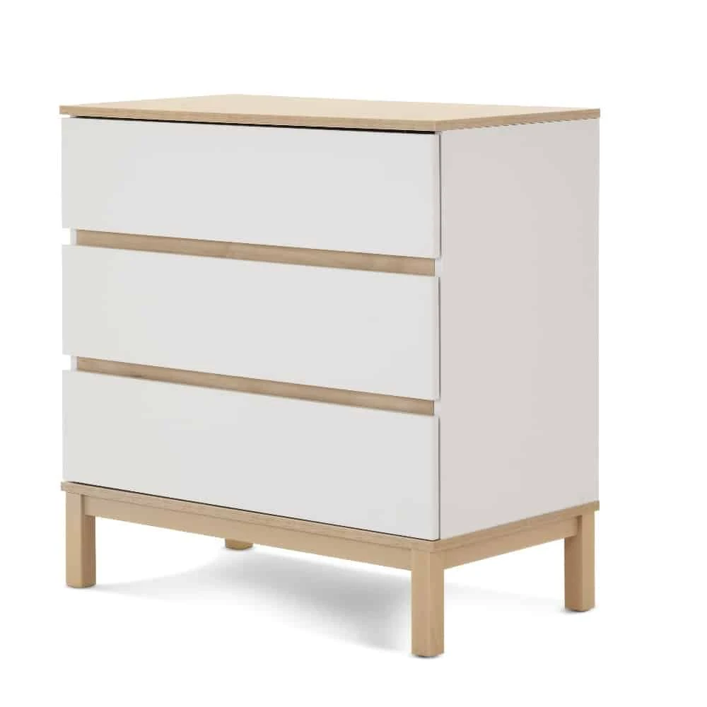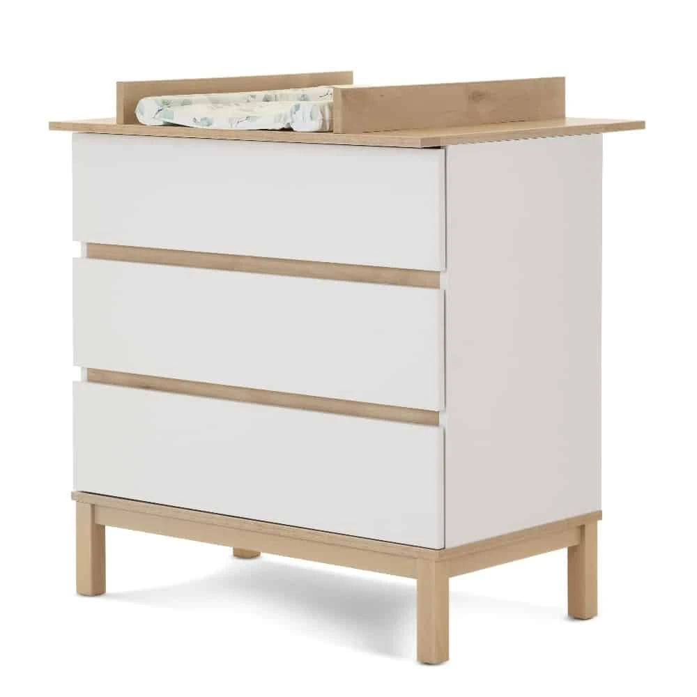 With its clean lines and two-tone colourway, the Astrid is not just a changing unit. The three large drawers fronted by a chic no-handle design provide plenty of storage. While the clever positioning of the changing top means you are stood face on to baby, allowing plenty of precious one to one time. Once you no longer need to use the changer, the removeable top ensures you have a stylish chest of drawers that will complement any room of the house for years to come.