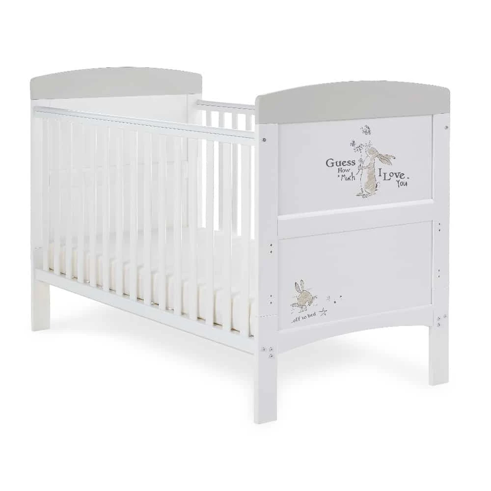The Obaby Grace GUESS Scribble Cot Bed turns your nursery into an enchanting story every night. The beautifully printed illustrations will bring your little one’s imagination to life whether it’s bedtime stories to wind down for a dreamy sleep or imaginary play.  The cotbed has an adjustable three-position base, the top setting allows your baby to be taken in and out of the cot bed without unnecessary bending.  As your child learns to sit and stand you can adjust the base by a further two positions to keep them safe and secure. Once your little one is ready to progress to a bed, the Grace cot bed will convert from a cot bed into a cosy, stylish toddler bed.
