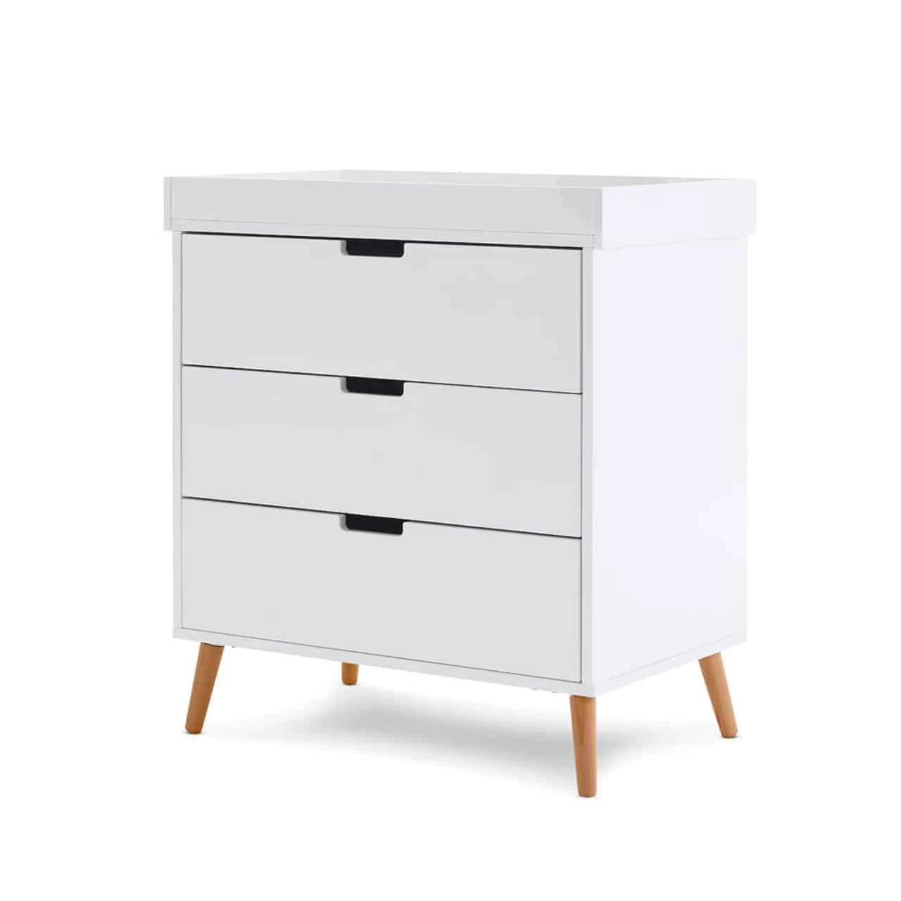 The Maya changing unit is the perfect storage companion, featuring three 34L capacity soft-close drawers with recessed handles that enable you to easily put away and quickly locate your little one’s belongings. On top of the unit is a changing area capable of fitting a changing mat up to 80 x 46.5cm. Once the changing area is no longer required it can be removed to create a stylish, flat-top chest of drawers that can be used for years to come.