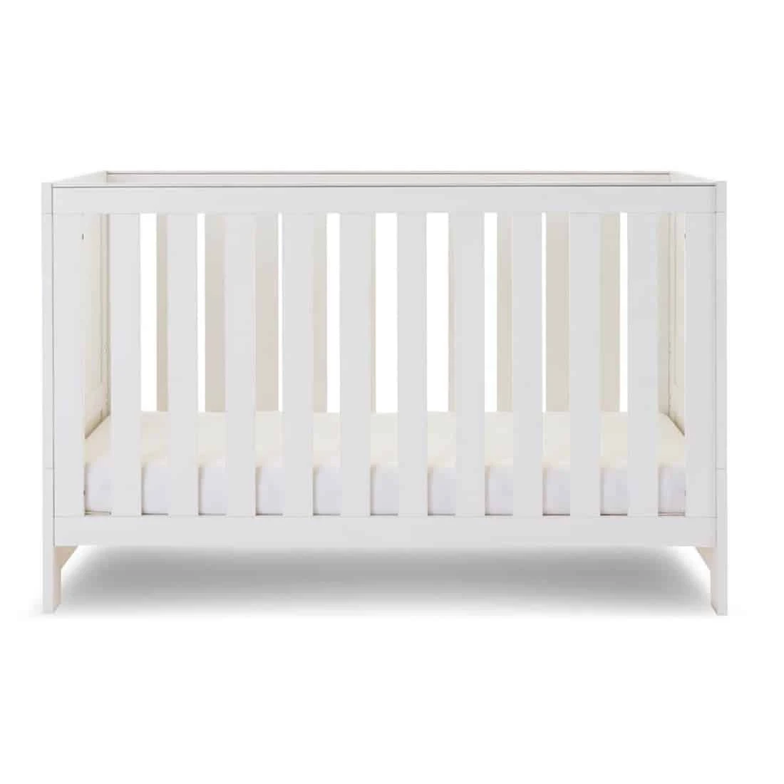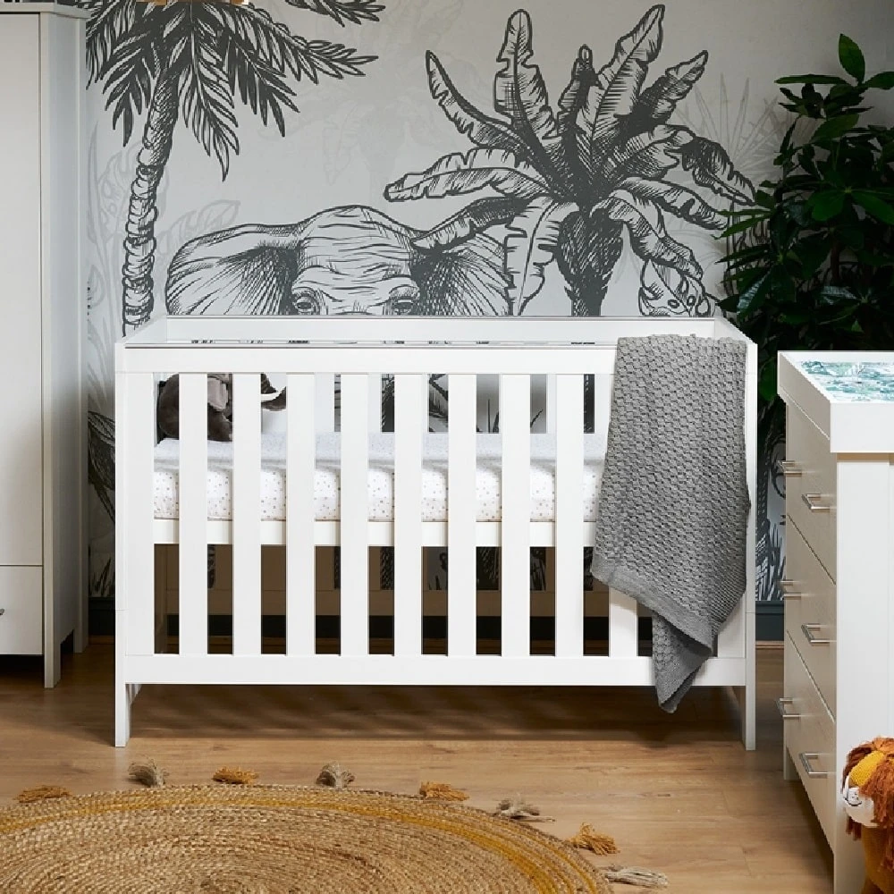 The Obaby Nika Cot Bed White Wash offers a contemporary design.Β This is due to its clean lines and textured oak effect finish, that will fit perfectly in todayβs modern nursery.
