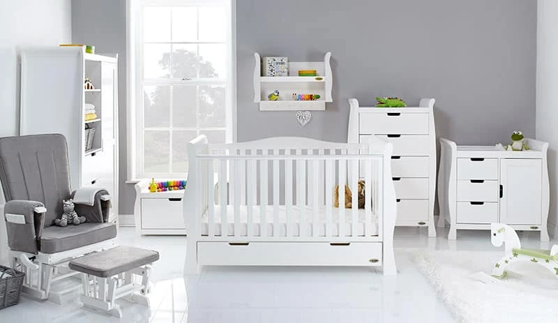 Obaby Stamford Luxe Nursery Room Set Builder – White, Base price is for the Cot Bed only and other items are optional extras, picture is for illustration purposes only.