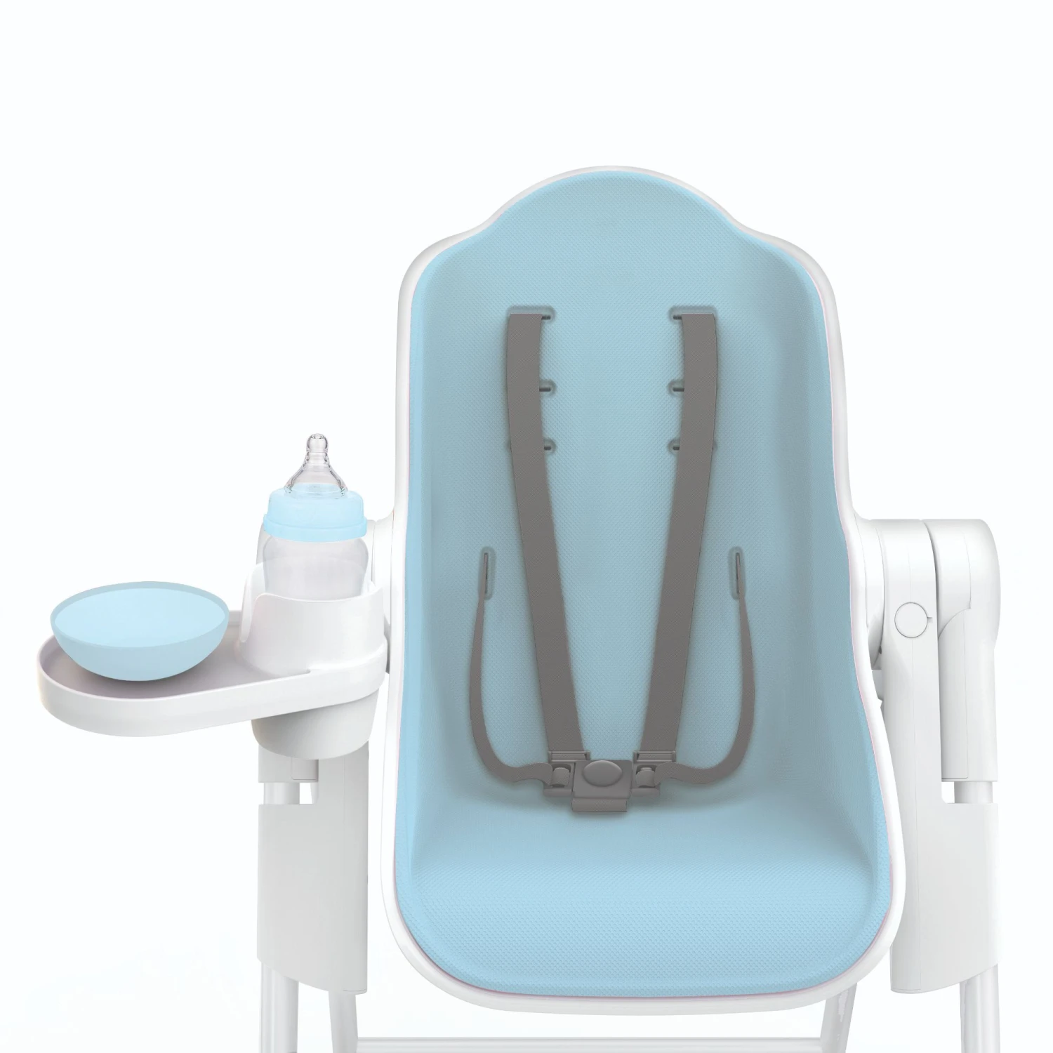 Suitable from birth the Oribel Blue Cocoon Highchair grows alongside your little one. Transforming from a newborn recliner through to a junior dining seat your infant will love this comfortable and stylish highchair.