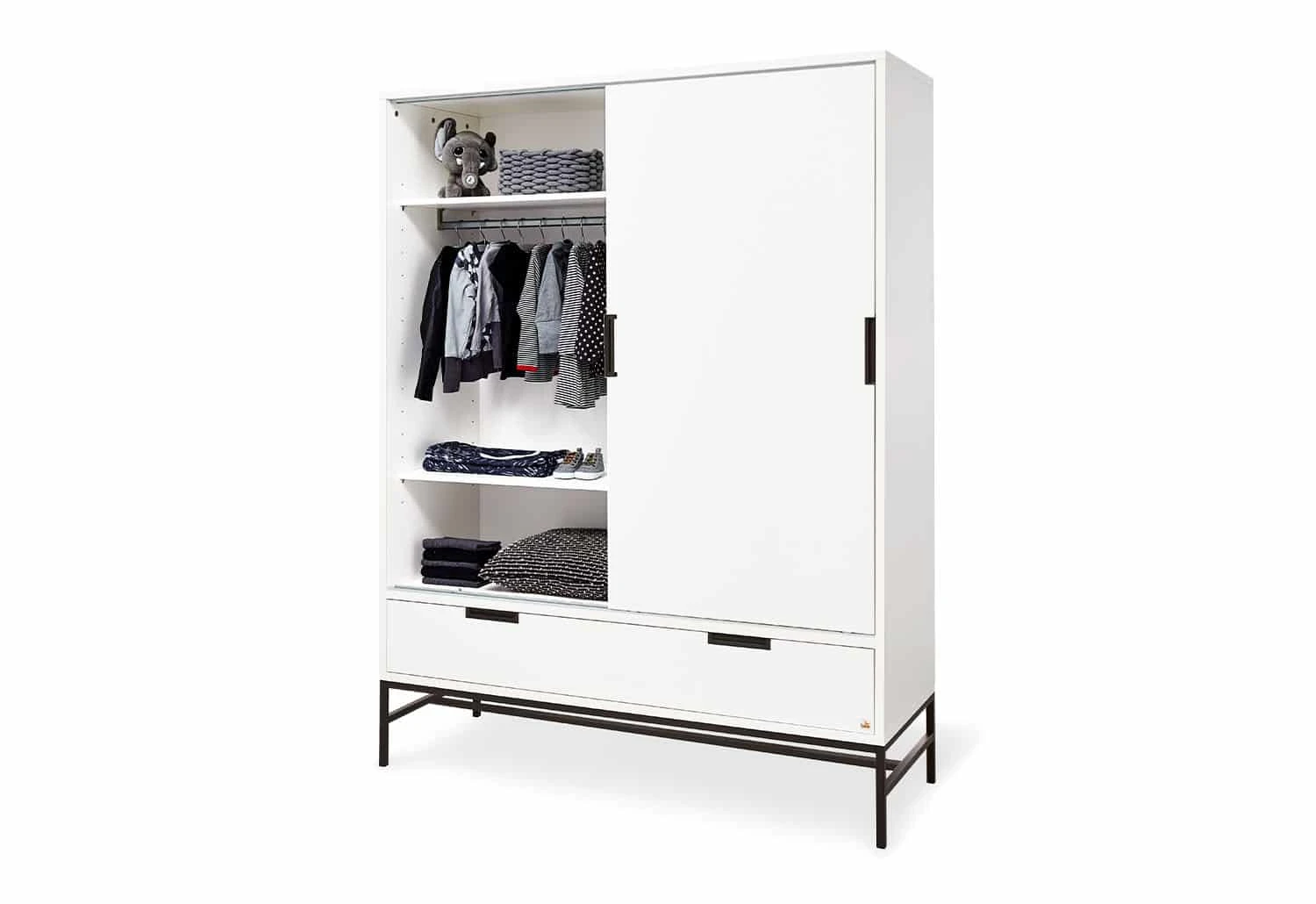 - 5 height-adjustable shelves, 1 clothes rail