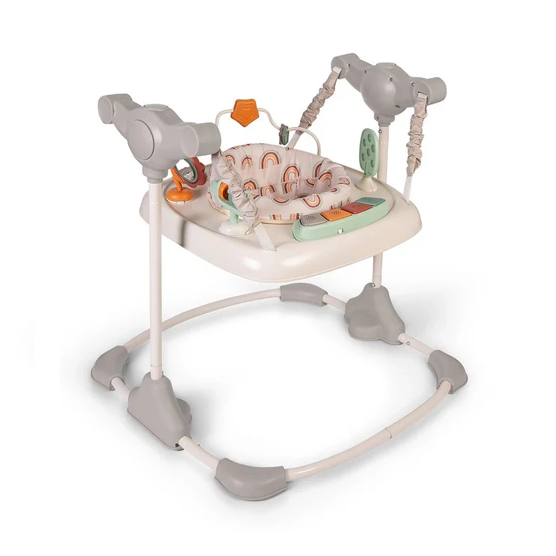 With a 360 degree fully rotating padded seat, stimulating moving and musical toys to play with that light up & play sounds that baby can interact and learn from. The frame can easily adjust to different heights ensuring the Jumparound grows with your baby.