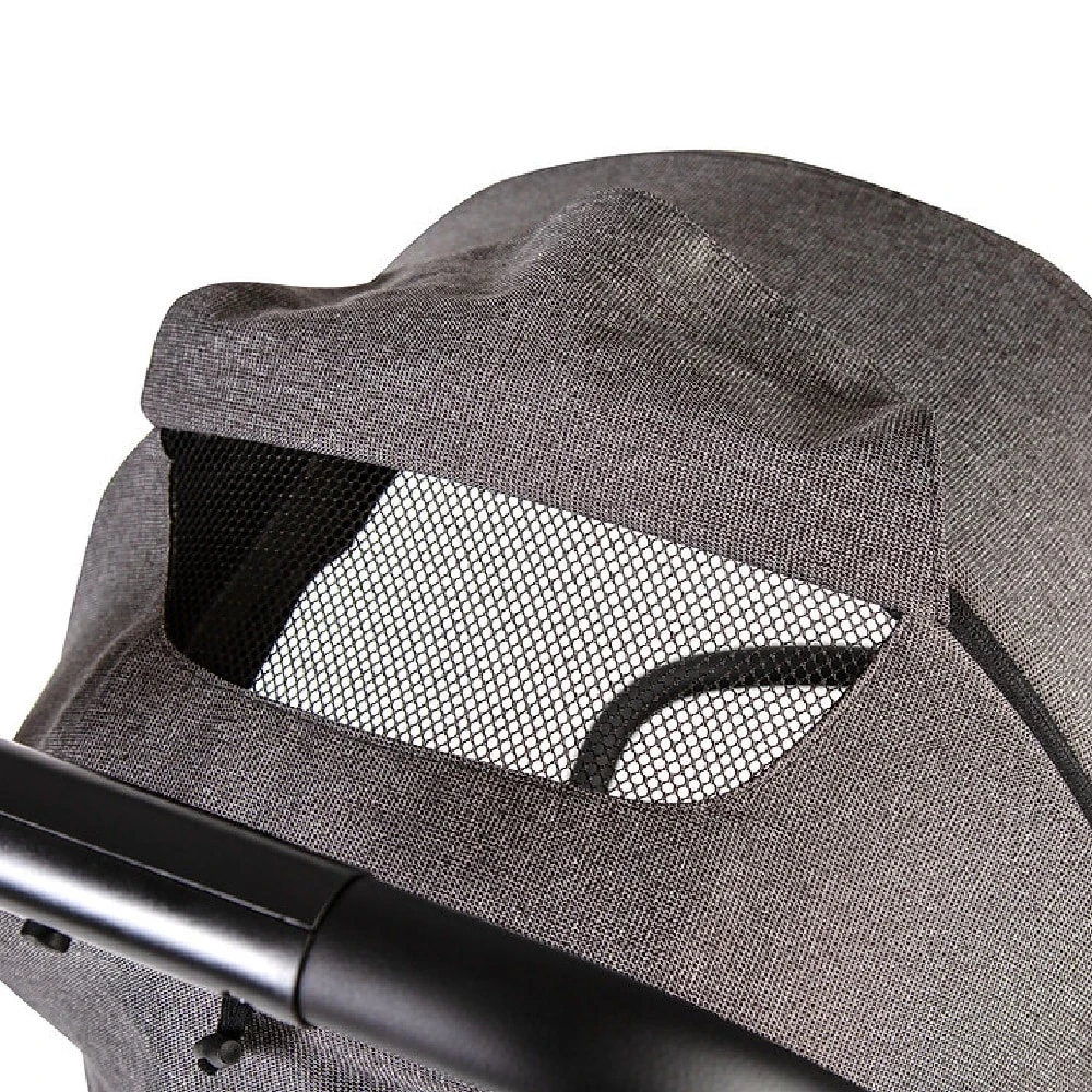 - Extendable hood with retractable sun visor and practical viewing section to check on baby