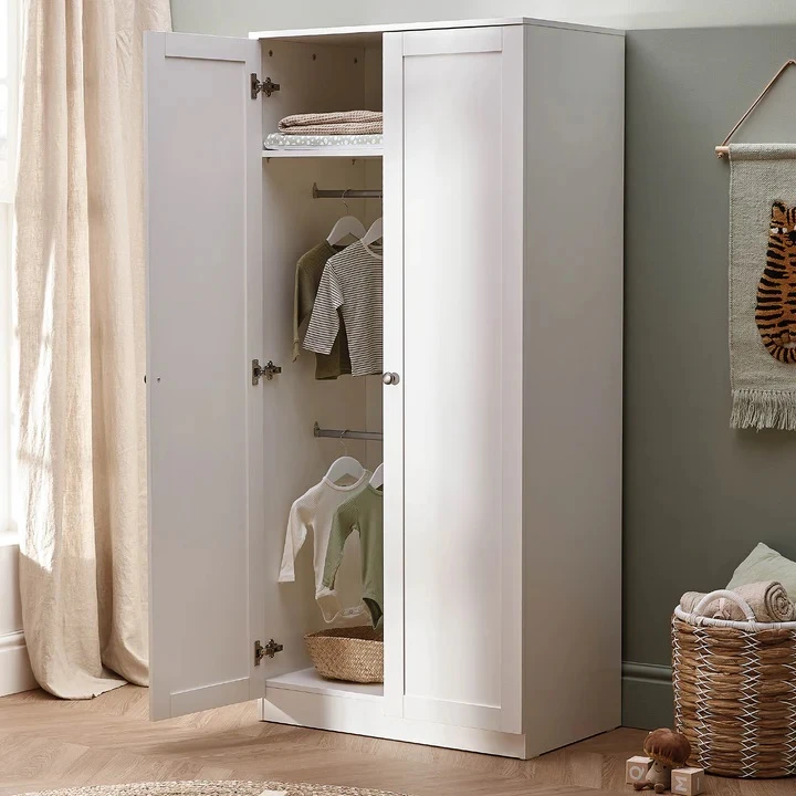 - Full size wardrobe with twin hanging rails and overhead shelf