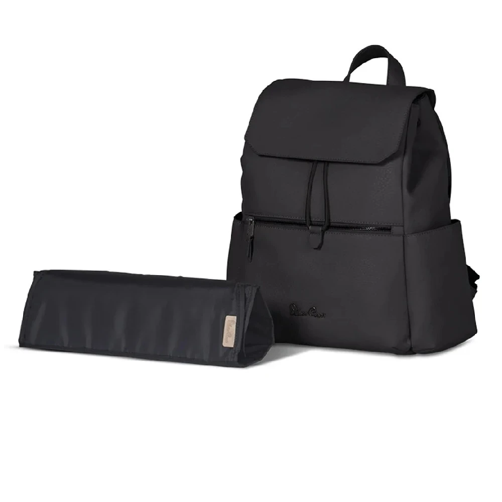Coordinating vegan leather changing backpack, thermal puffer jacket-style footmuff, cup holder and phone holder.