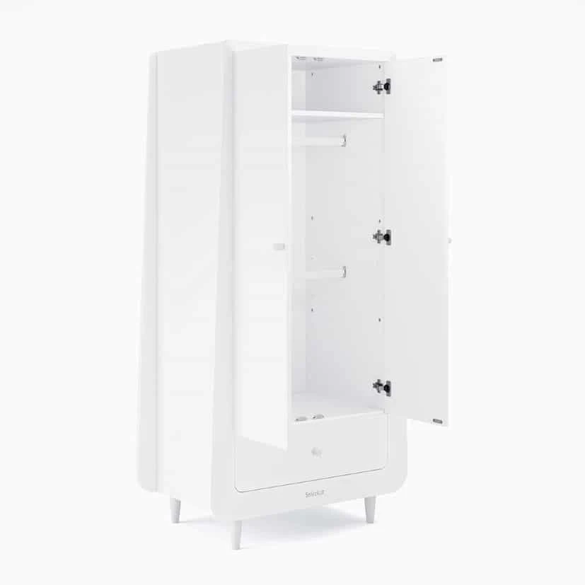 The matching dresser and double wardrobe will complete the look beautifully the dresser has three built in drawers to hold all of your little ones essentials and the wardrobe features adjustable shelving and rails with a large drawer for bedding and essentials.