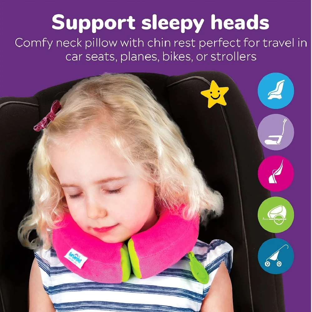 Ergonomically designed with a narrow profile to provide extra support when using child seats with existing headrests; perfect for car seats, plane seats, bike seats and also for buggies and strollers. It also comes with the unique Trunki Grip (TM) so your little one can attach their favourite comforter or blanket.