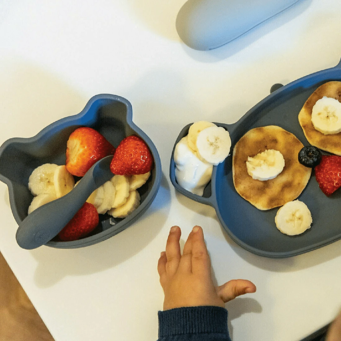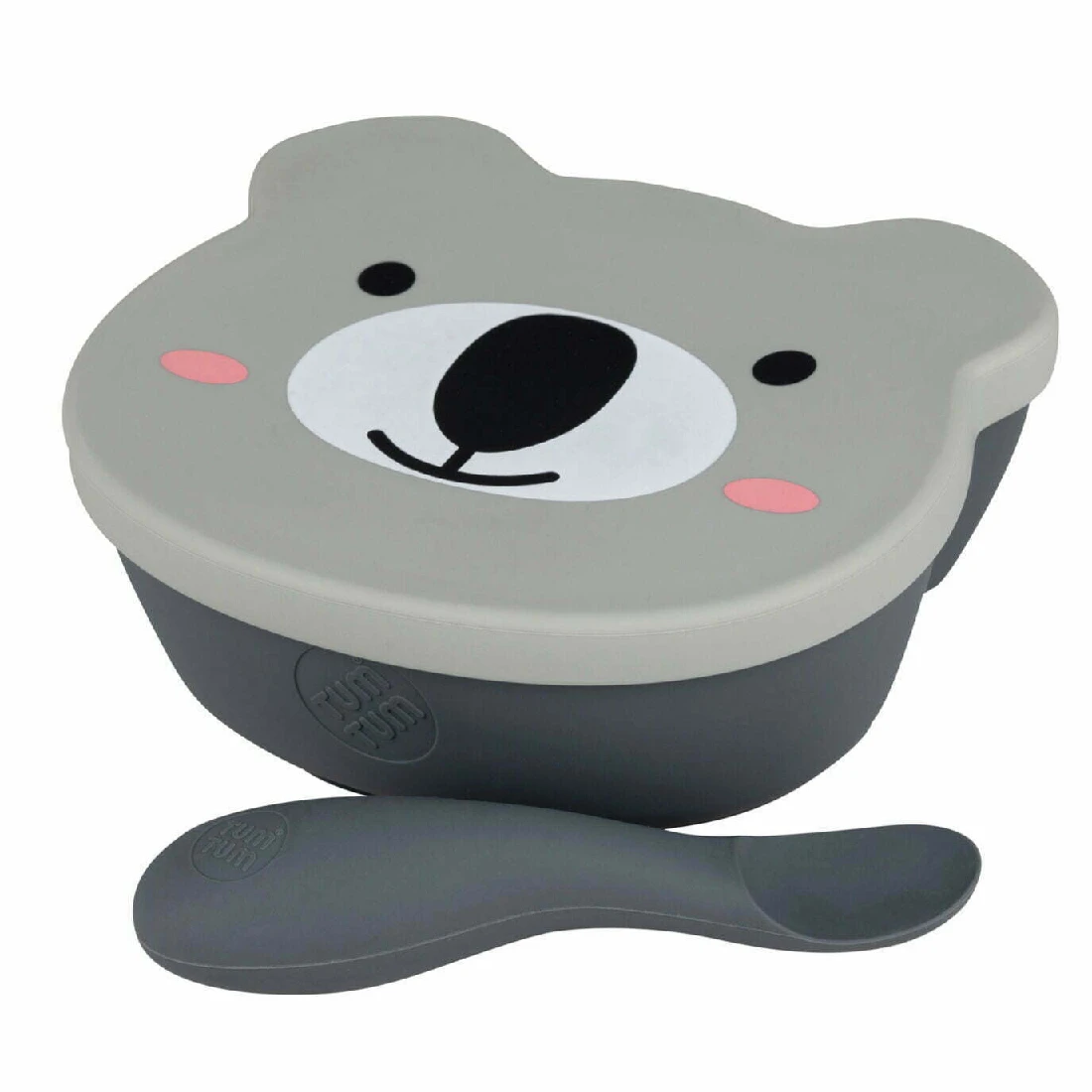 Tum Tum Silicone Kev Koala Weaning Bowl and Spoon Set is the cutest baby bowl designed to make weaning a bit easier for you and your little one. The set includes a bowl with a super strong suction base, a lid for securing left overs or snacks, and a perfectly designed learning spoon.