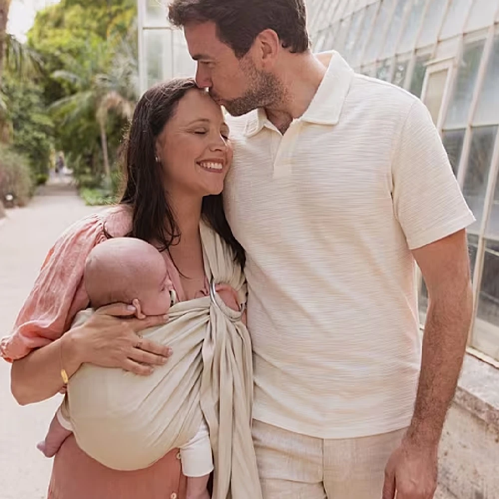 The ring sling baby carrier effortlessly adjusts to all wearers with a simple pull, making it perfect for sharing and a go-to baby wraps carrier sling for modern parents on the go. It is adjustable up to 200cm in length and 69cm wide.