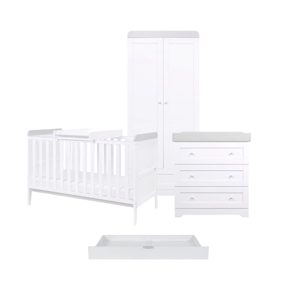 Tutti Bambini Rio 5 Piece Nursery Room Set/Underdrawer/Cot Top Changer – White Dove Grey