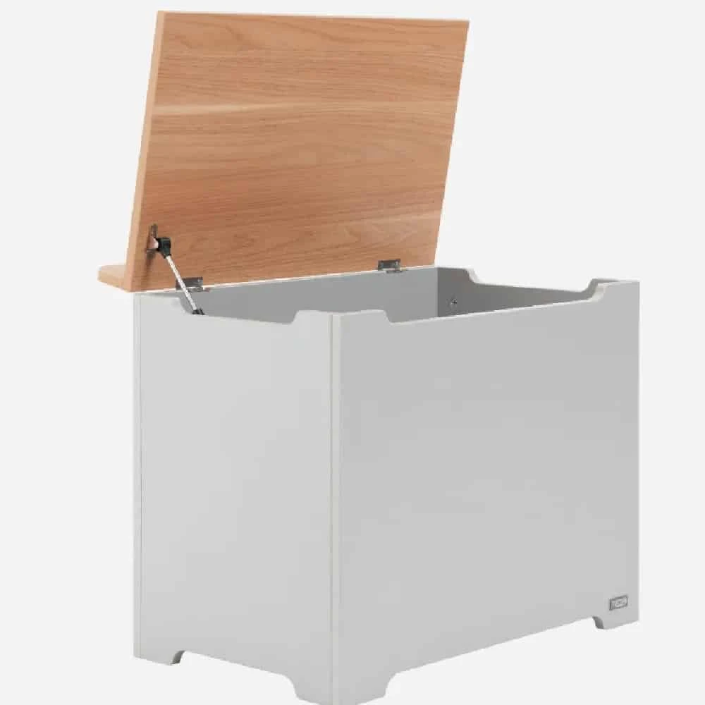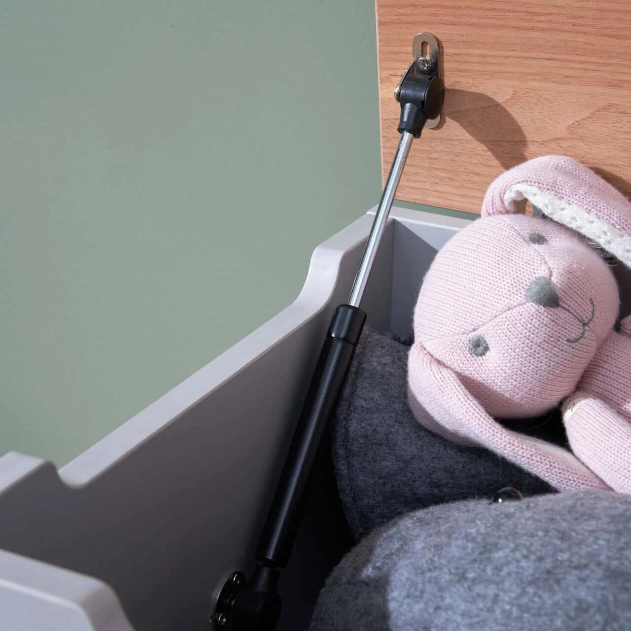 The Rio Toy Box comes with a stylish wooden top cover equipped with slow closing mechanism, that reduces the risk of pinch curious little fingers. There are also special finger holes that allows for easy opening and safe closing from each side. The box can be also used doubles as a seating area for your child.