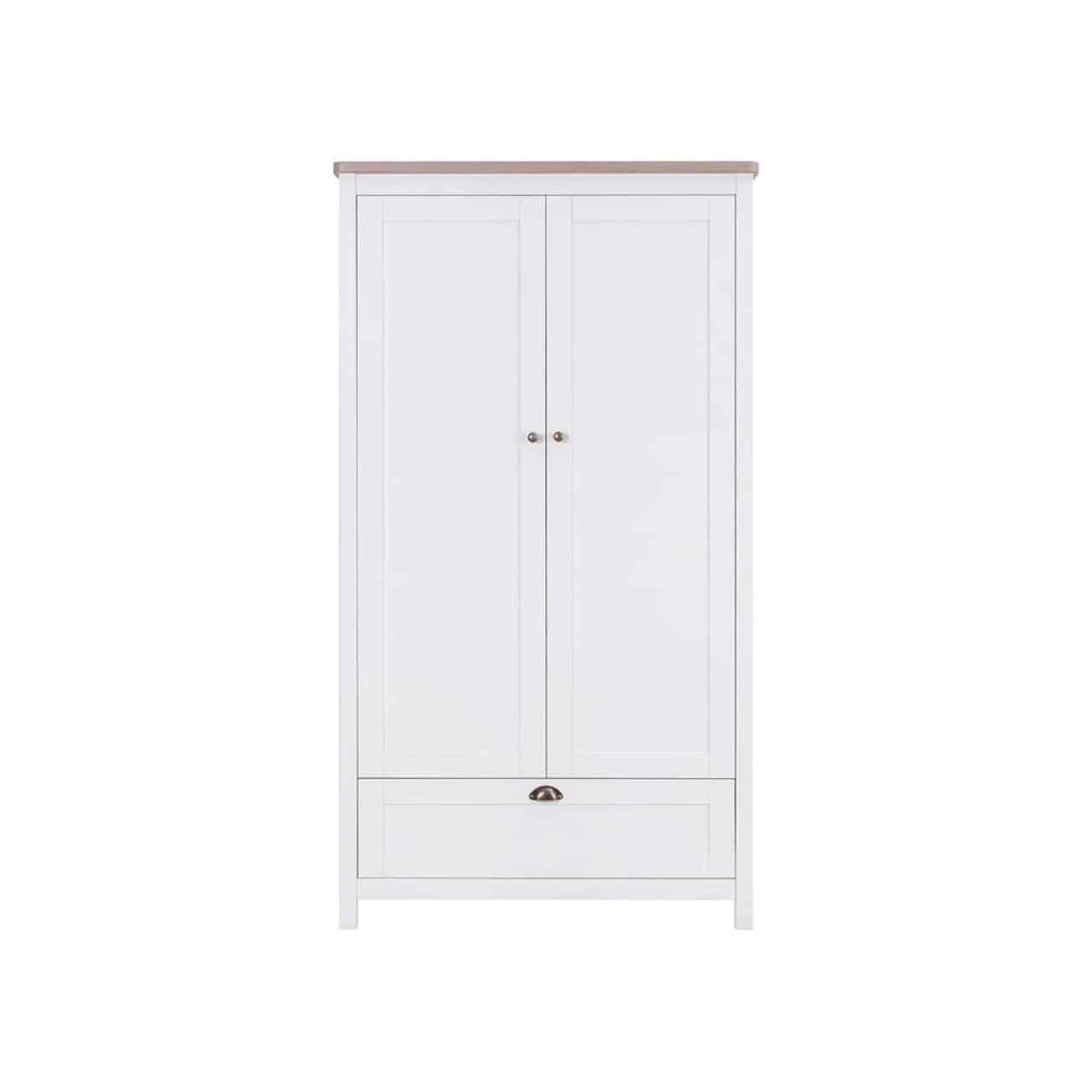 The shaker style chest changer features a fully removable changing top and the matching wardrobe offers ample storage for your baby essentials in a classic white and oak shaker design.